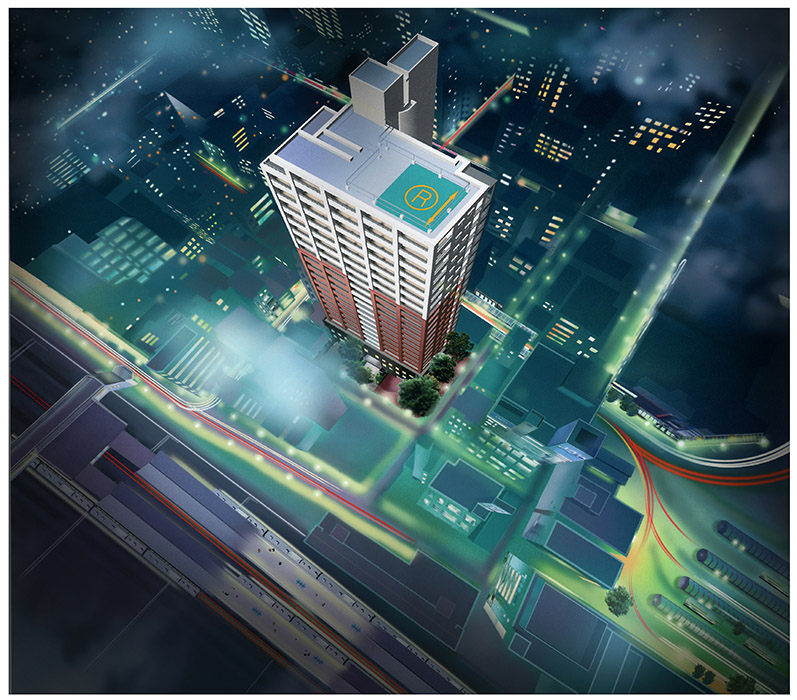 平塚のタワーマンションの鳥瞰パース夜景バージョンです 平塚タワーマンションの鳥瞰パースです