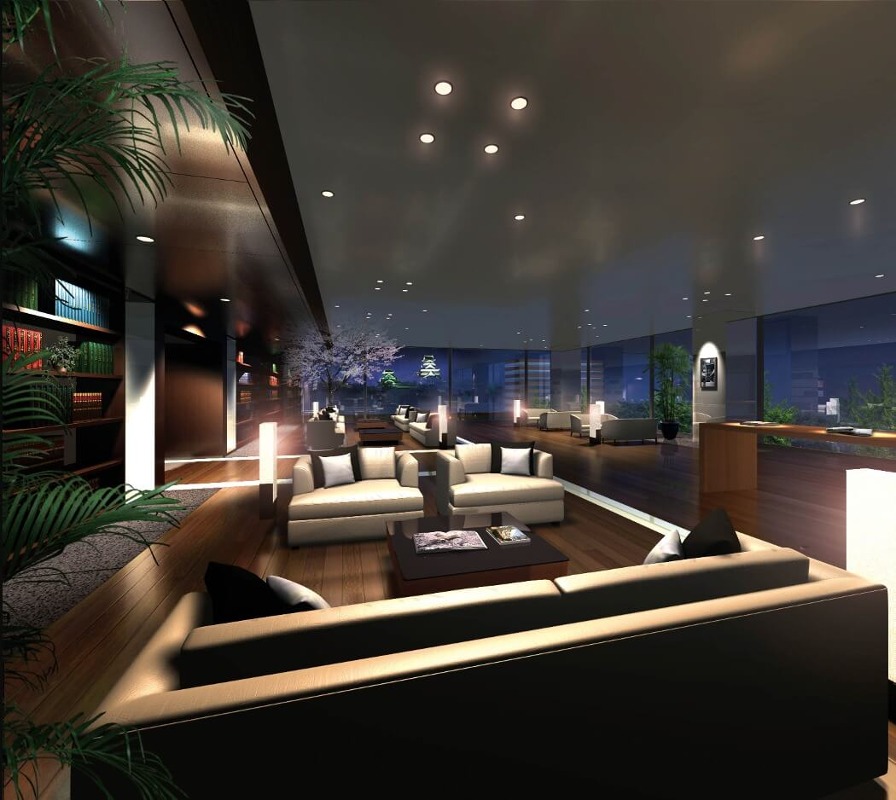 人目線よりも数フロアー高い目線で、熊本城を望むことが出来る、集合住宅オーナーズルームの計画パースです。